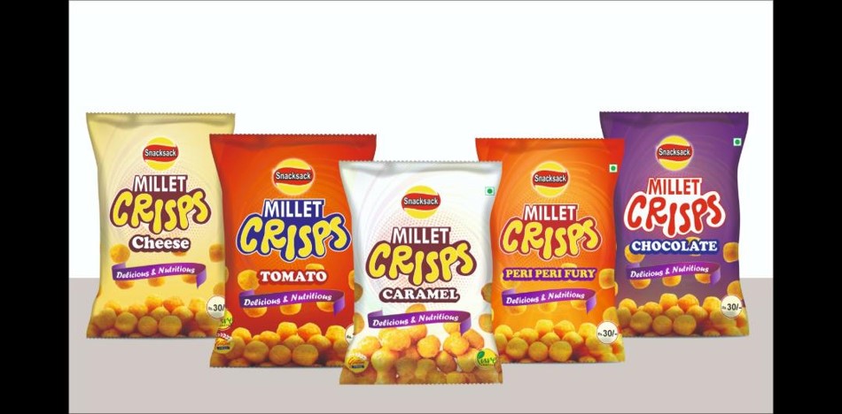 First of its kind millets based recipes in few many flavours what are in natural status while offering good nutritional nutrients with pleasuring mouthfeel when compared to all other packed snacks. It is also good for all time consuming and by all age groups in all countries.